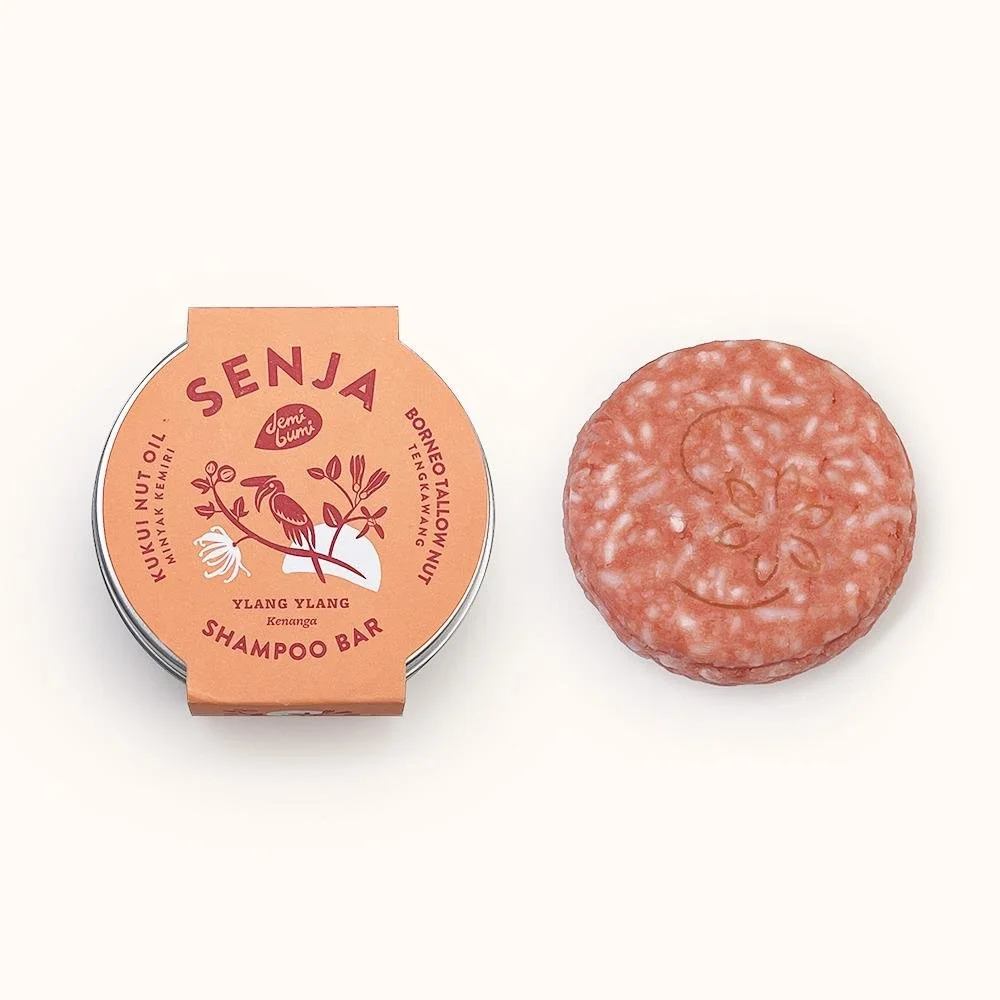 Packaging design for @demibumi.id natural shampoo bar, using sustainable materials. Made from kukui nut oil, borneo tallow nut and ylang ylang, Senja shampoo bar has all the natural ingredients for better healthy hair while also reducing waste at the same time by using recyclable material. Now available at Tokopedia and Shopee.